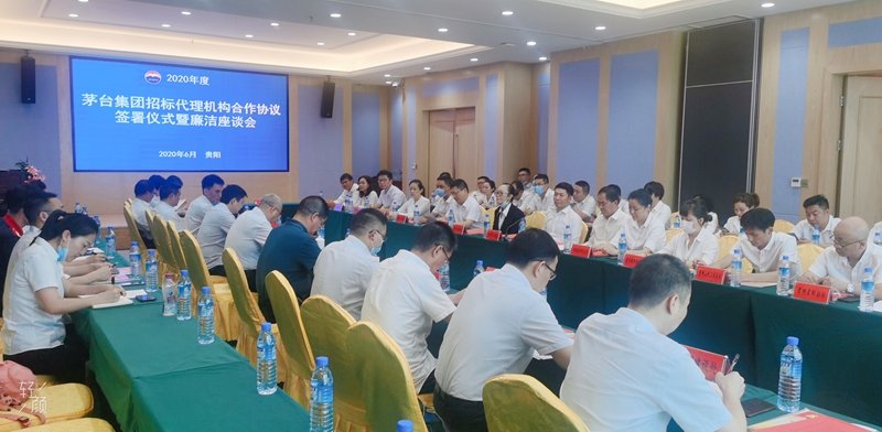 2020年6月19日,茅臺(tái)集團(tuán)招標(biāo)代理機(jī)構(gòu)合作協(xié)議簽署儀式暨廉潔座談會(huì)在貴州省貴陽市觀山湖區(qū)畢節(jié)路58號(hào)聯(lián)合廣場4號(hào)樓維也納國際酒店召開。會(huì)議由茅臺(tái)集團(tuán)公司黨委委員、總法律顧問段建樺主持。茅臺(tái)集團(tuán)公司紀(jì)委、集中采購中心等單位負(fù)責(zé)人,貴州省招標(biāo)有限公司、貴州鵬業(yè)工程建設(shè)咨詢事務(wù)有限責(zé)任公司等16家招標(biāo)代理機(jī)構(gòu)代表參會(huì)。貴州鵬業(yè)工程建設(shè)咨詢事務(wù)有限責(zé)任公司董事長魏澤黔作為代表參加了此次會(huì)議。
